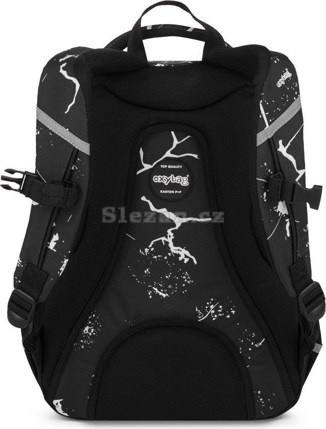 Zpevněné nepromokavé dno chrání obsah před vlhkostí, reflexní prvky zajišťují větší bezpečnost na cestě do školy i zpět.