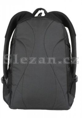 Zpevněná, polstrovaná záda. Posltrované, anatomicky tvarované a nastavitelné ramenní popruhy. Boční kompresní popruhy a polstrované dno.