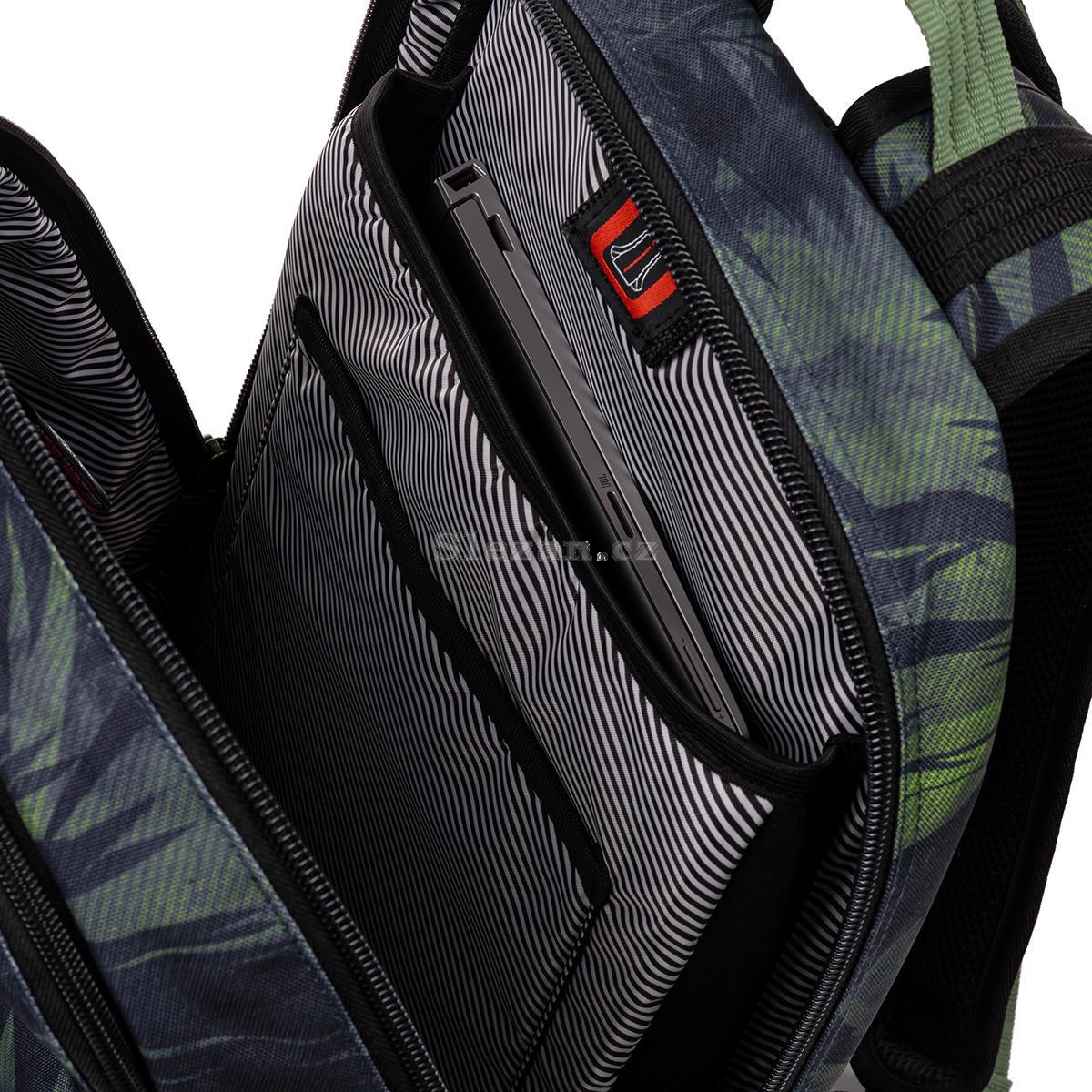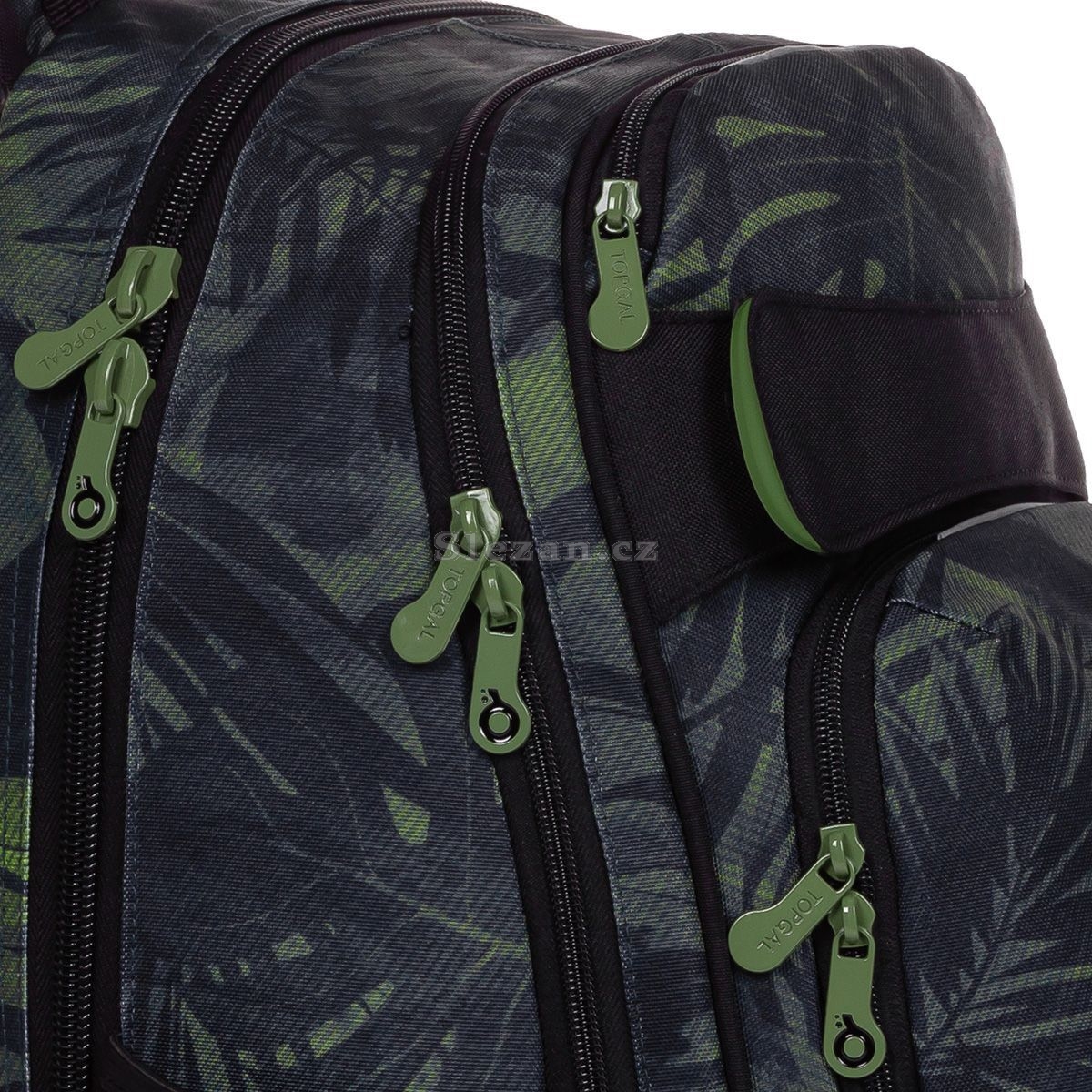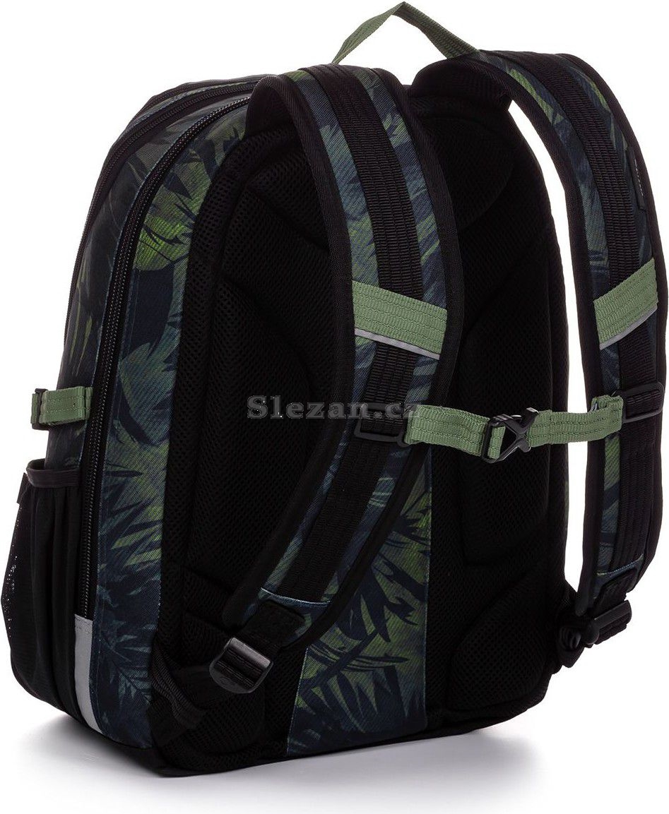 od 2. stupně ZŠ, středoškoláky, ale i studenty VŠ dvě komory a tři kapsy na čele batohu popruhy na zavěšení skejtu pevná záda, zvětšený objem Batoh pro všechny studenty od výšky cca 150 cm. Bude svým objemem vyhovovat na druhý stupeň ZŠ, pro středoškoláky, ale i vysokoškoláky. Střih YUMI je jedním z našich nejprodávanějších batohů. Letos nově v zelených barvách s khaki doplňky - líbí? Střih batohu YUMI svou prostorností bude vyhovovat nejen do školy, ale třeba i na volný čas nebo jako batoh do kroužků. Záda batohu jsou polstrovaná a anatomicky tvarovaná, zpevněná lehkým hliníkovým rámem. Ten nevytahujte, záda by ztratila pevnost a tvar. Ramenní popruhy jsou polstrované, ergonomicky tvarované, doplněné výškově nastavitelným hrudním popruhem. Dvě hlavní komory pojmou veškeré studijní potřeby. Zadní komora batohu je nejobjemnější. Studenti, kteří nosí do školy notebook, v ní určitě ocení polstrovanou kapsu na notebook do velikosti 15,4”. Ta se ale dá využít i na přenášení složek nebo sešitů A4. Na kapse je našitá menší polstrovaná kapsa, třeba na mobil, nebo tablet. V přední užší komoře je praktická síťová kapsa na zip a karabina na klíče, která je našita na dlouhé pružence. Na čele batohu jsou tři malé kapsy. Spodní je nejmenší, další dvě jsou takřka stejně velké. Do prostřední kapsy se vejde třeba krabička na svačinku. Kapsy od sebe vizuálně oddělují dva pásy na suchý zip na přenášení skejtu. Můžete je ale klidně použít na cokoliv jiného, třeba na zavěšení mikčy nebo bundy. Na obou bocích batohu jsou kapsy z pevné síťoviny. Jedna je určená k přenášení lahve s pitím - je opatřena kompresním popruhem, díky kterému nebude problém s umístěním i větší PETky. Ani u batohu YUMI jsme nezapomněli na reflexní prvky. Najdete je na čele, bocích (při ukončení zipů zadní komory) i na ramenních popruzích batohu a na to jak svítí, se můžete podívat do detailních fotek. K batohu lze přikoupit pouzdro ETUE 20037.Něco navíc: pevné taháčky zátěr proti dešti pevné nepropustné dno z TOPDURY poutko na přenášení batohu v ruce
