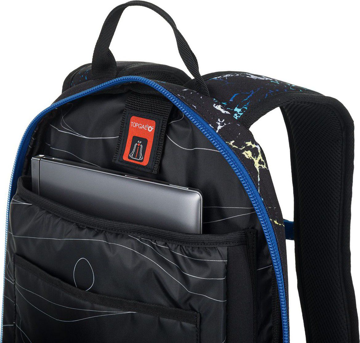 Dvoukomorový batoh se stylovou nášivkou. Záda batohu jsou polstrovaná, anatomicky tvarovaná s lehkou hliníkovou výztuhou. Uvnitř zadní komory je umístěna polstrovaná kapsa na notebook a menší na tablet či powerbanku, v druhé komoře najdete klíčenku a síťovanou kapsu na zip.