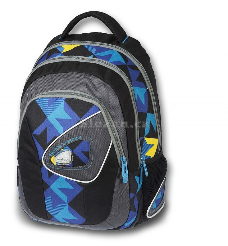 Studentský batoh má tři hlavní kapsy. Přední kapsa batohu je uvnitř rozdělena přepážkou, na které jsou našity kapsičky pro mobilní telefon a stravenky. Prostřední kapsa má na své zadní straně našity dvě kapsy pro odkládání žákovská knížky a klíčů.. Hlavní kapsa je uvnitř rozdělena dvěma přepážkami, pro lepší uložení školních pomůcek (sešitů, knih…). Na své zadní straně má našitu další přepážku s kapsou. Na obou stranách batohu jsou dvě menší kapsy k odkládání láhve s pitím, peněženky, kapesníčků. Studentský batoh je vybaven polstrovanými zády, pro pohodlné a správné nošení. Dále je vybaven polstrovaným držadlem a výškově nastavitelnými řemeny, v jejihž středu je našit suchý zip pro upevnění přebávajícího popruhu.Rozměry (š x h x v) 32x19x45 cm Hmotnost 1.16 kg Materiál PES 600D/Nylon 1680D