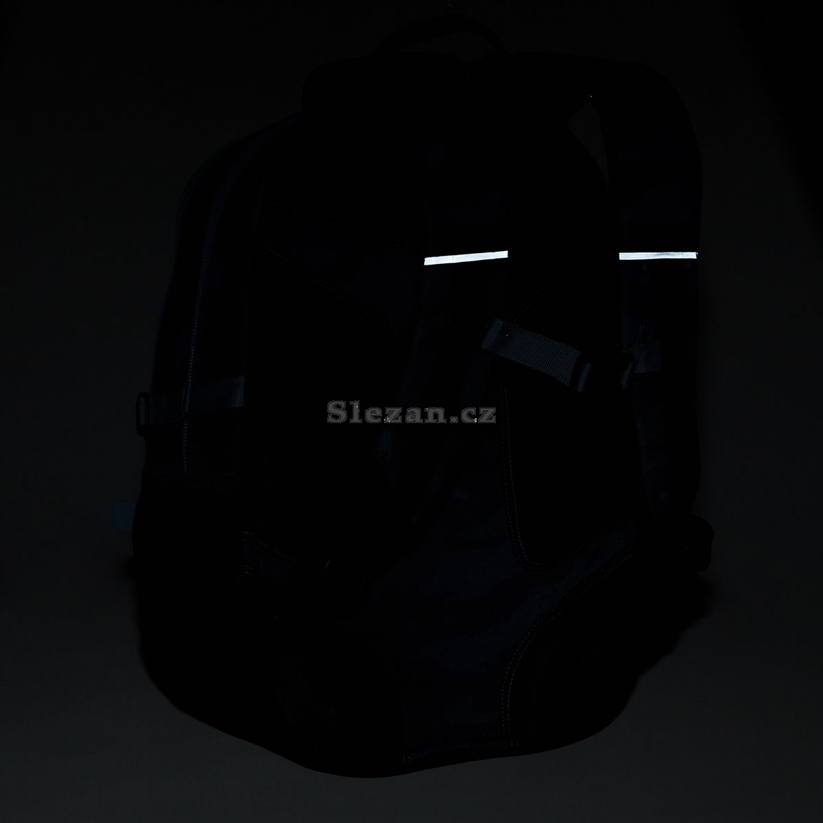 Záda batohu jsou polstrovaná tak, aby došlo ke správné cirkulaci vzduchu. Navíc jsou vyztužena a tvarována lehkým hliníkovým pásem. Ramenní popruhy jsou polstrované a ergonomicky tvarované. Doplňuje je hrudní popruh, který ulehčí při nošení opravdu těžkého nákladu učiva. Reflexní prvky jsou ideálně zasazené do designu batohu na čele i ramenních popruzích.