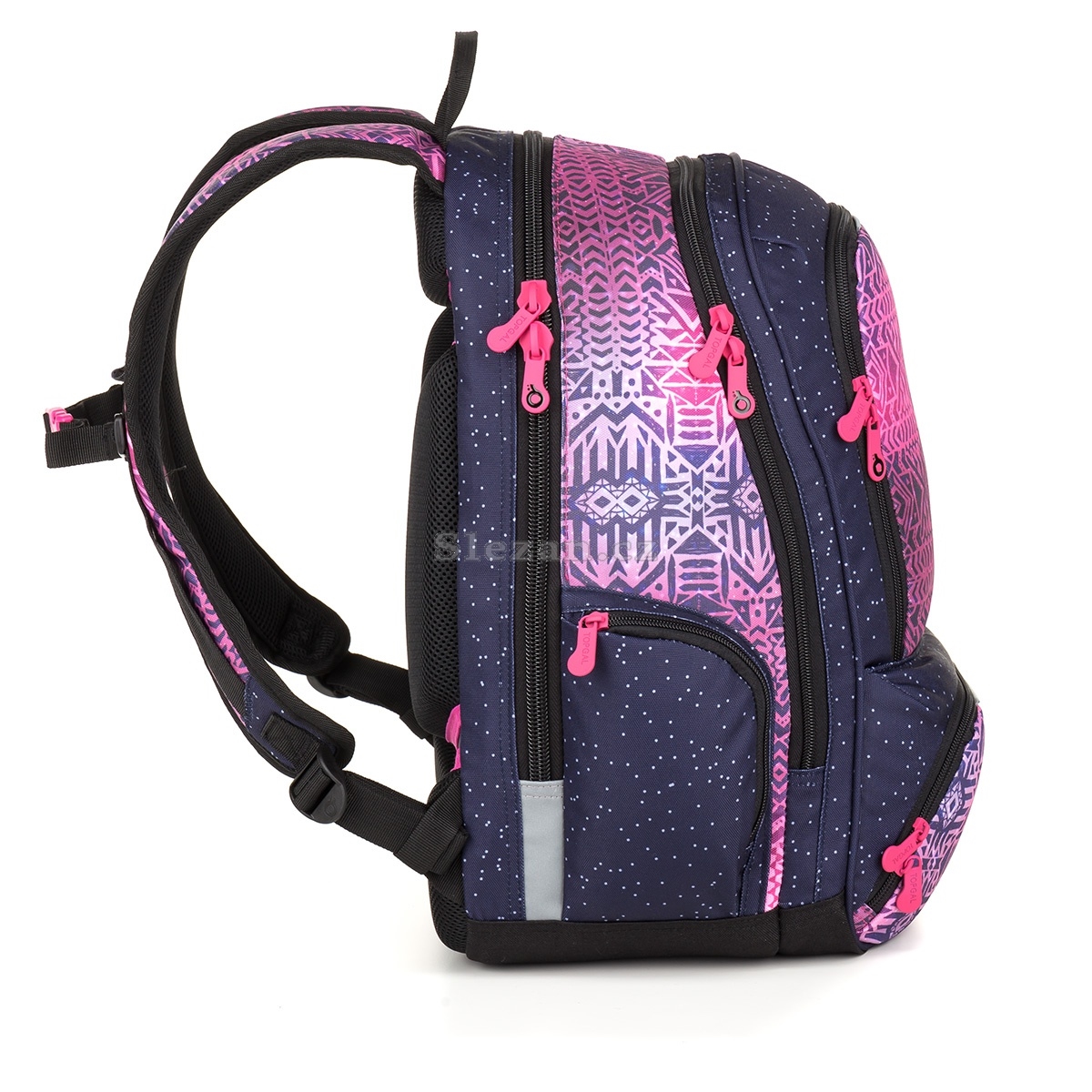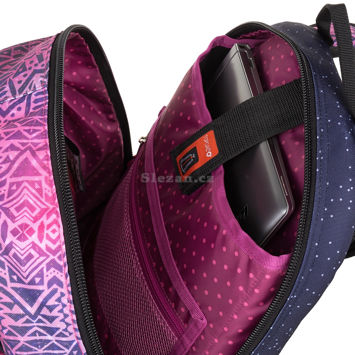 Dvoukomorový studentský batoh střihu SURI se vrací po roční pauze se zbrusu novým vzorem! Kromě skvělého designu s sebou přináší také objemný střih se dvěma předními kapsičkami ve zcela novém lehce etno potisku. Hodí se pro slečny na druhém stupni ZŠ, ale i pro starší studentky, středoškolačky.