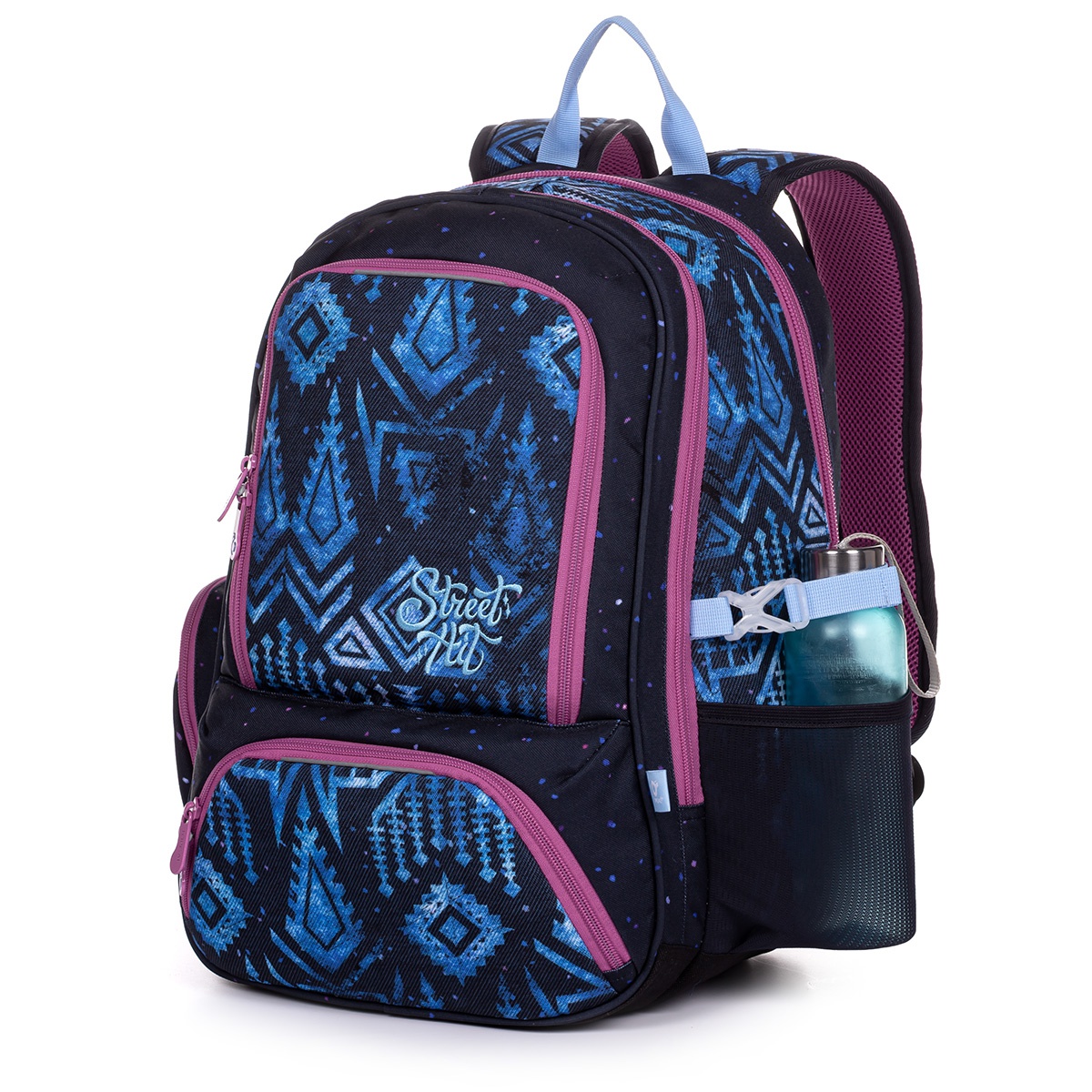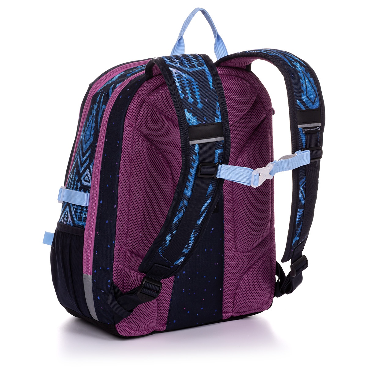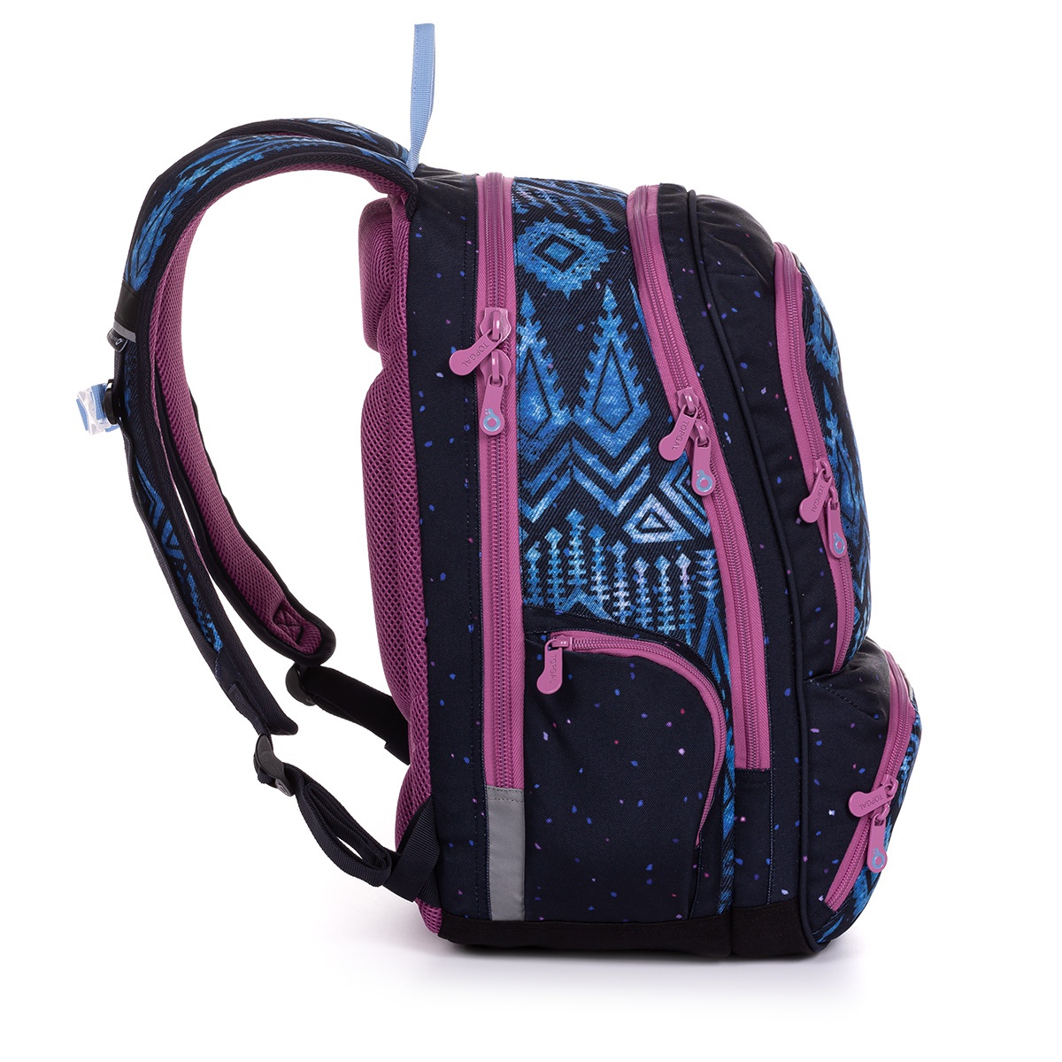 O potisk ve stylu etno jste si často psali, proto jsme v letošním roce pro holky ušili praktický, objemný, dvoukomorový batoh SURI v modrých barvách a fialovými detaily na zipech a v zádové části. Tak co holky, líbí?