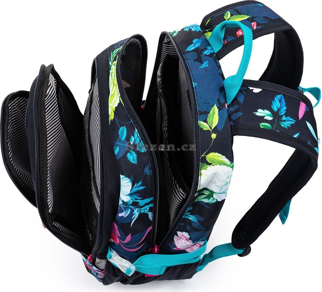 Jemné, elegantní květy a funkční design jsou hlavní vychytávky sportovně elegantního batohu, který ocení hlavně studentky na druhém stupni ZŠ a středoškolačky. Ani na tomto batohu jsme nešetřili, proto má záda polstrovaná, anatomicky tvarovaná díky lehkému hliníkovému rámu. Pohodlné nošení každodenního nákladu učení zajistí ergonomicky tvarované, polstrované ramenní popruhy, které můžete na hrudi zajistit výškově nastavitelnou hrudní přezkou.