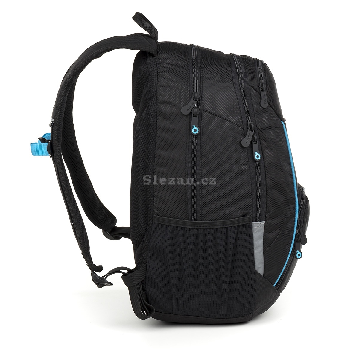 Po obou stranách batohu najdete hluboké síťové kapsy, z nichž jedna je opatřena stahovacím páskem. Díky němu nebude z kapsy vypadávat ani větší pet lahev.