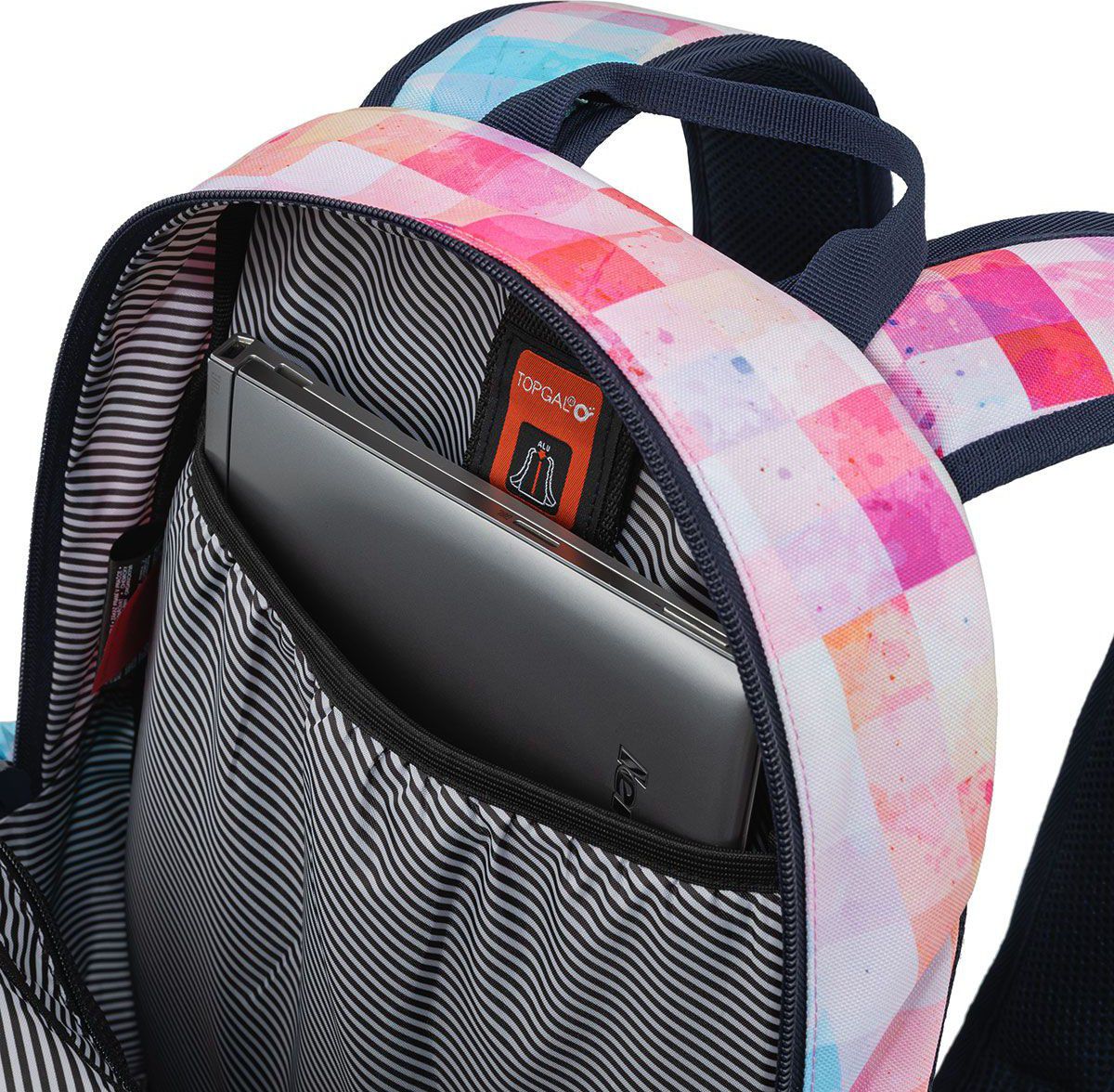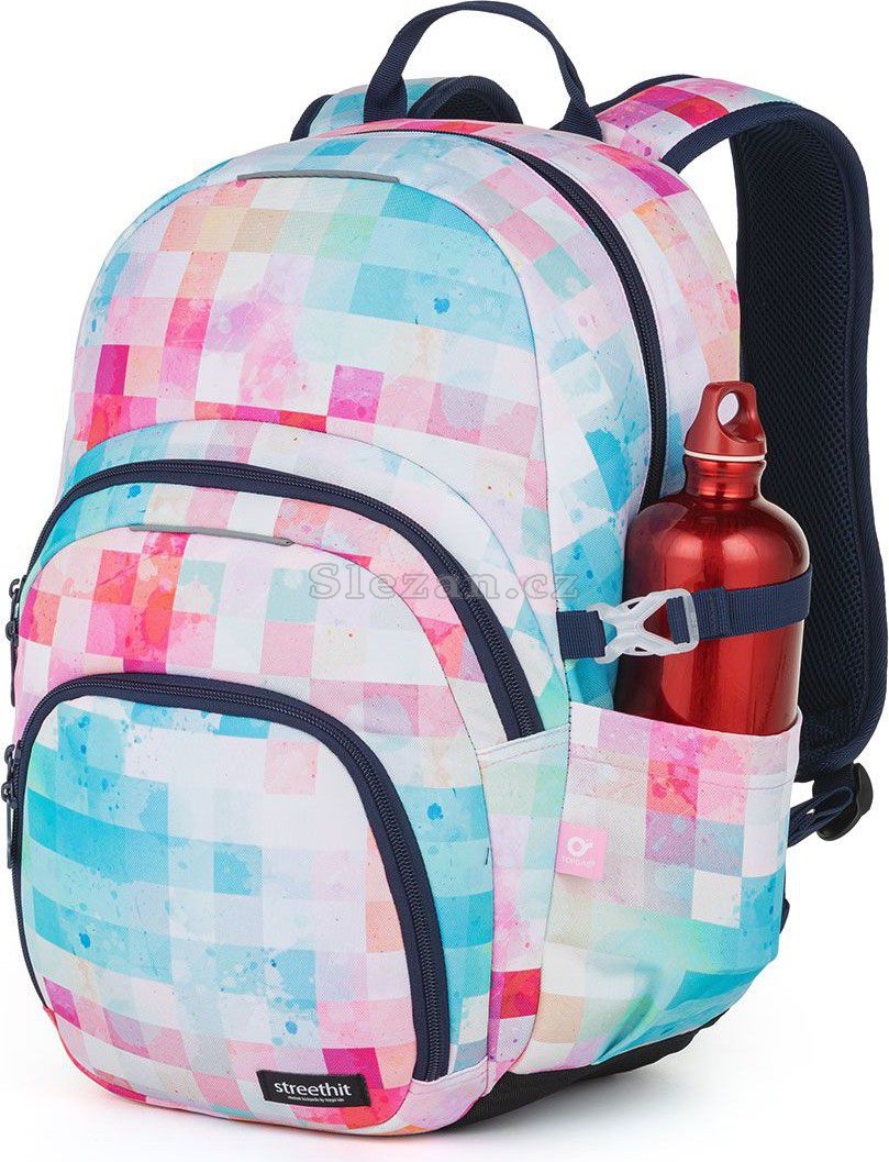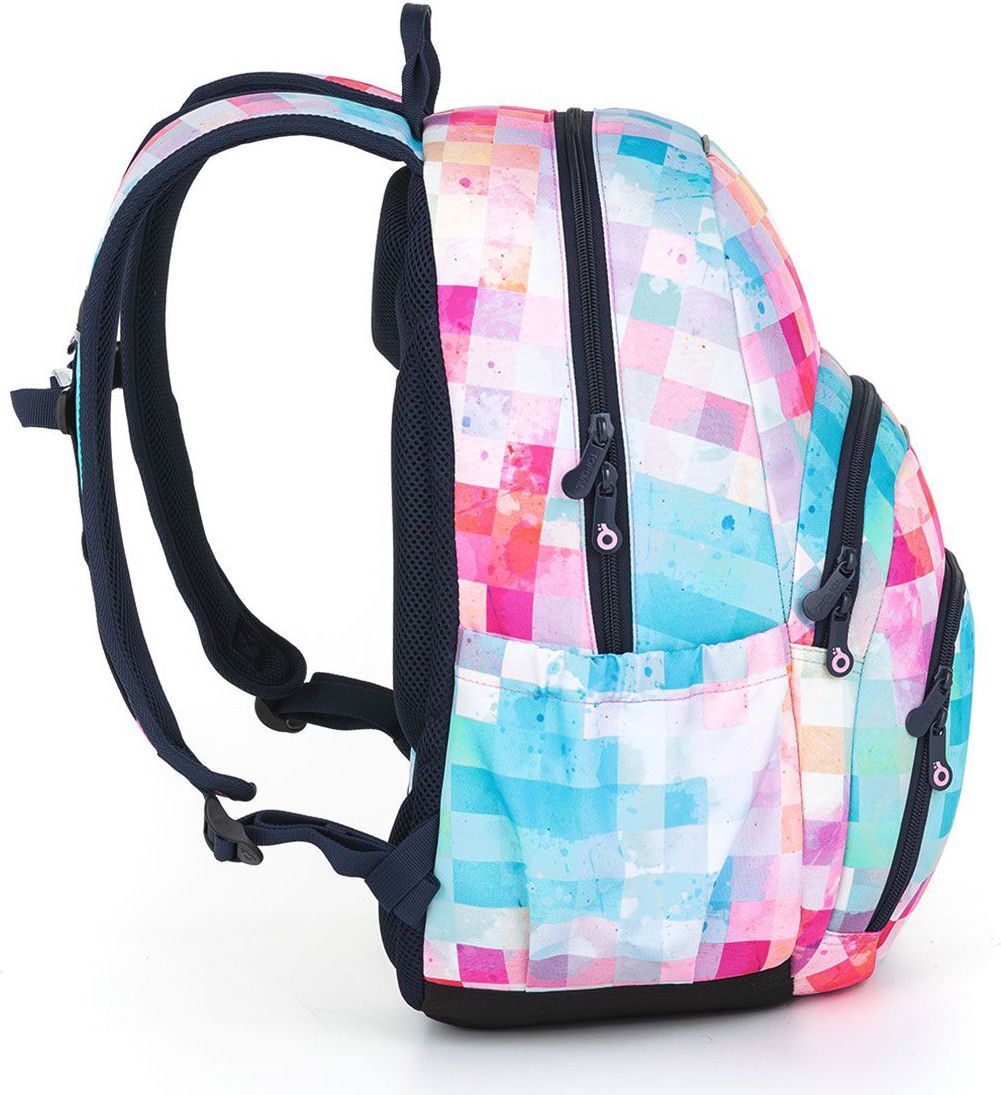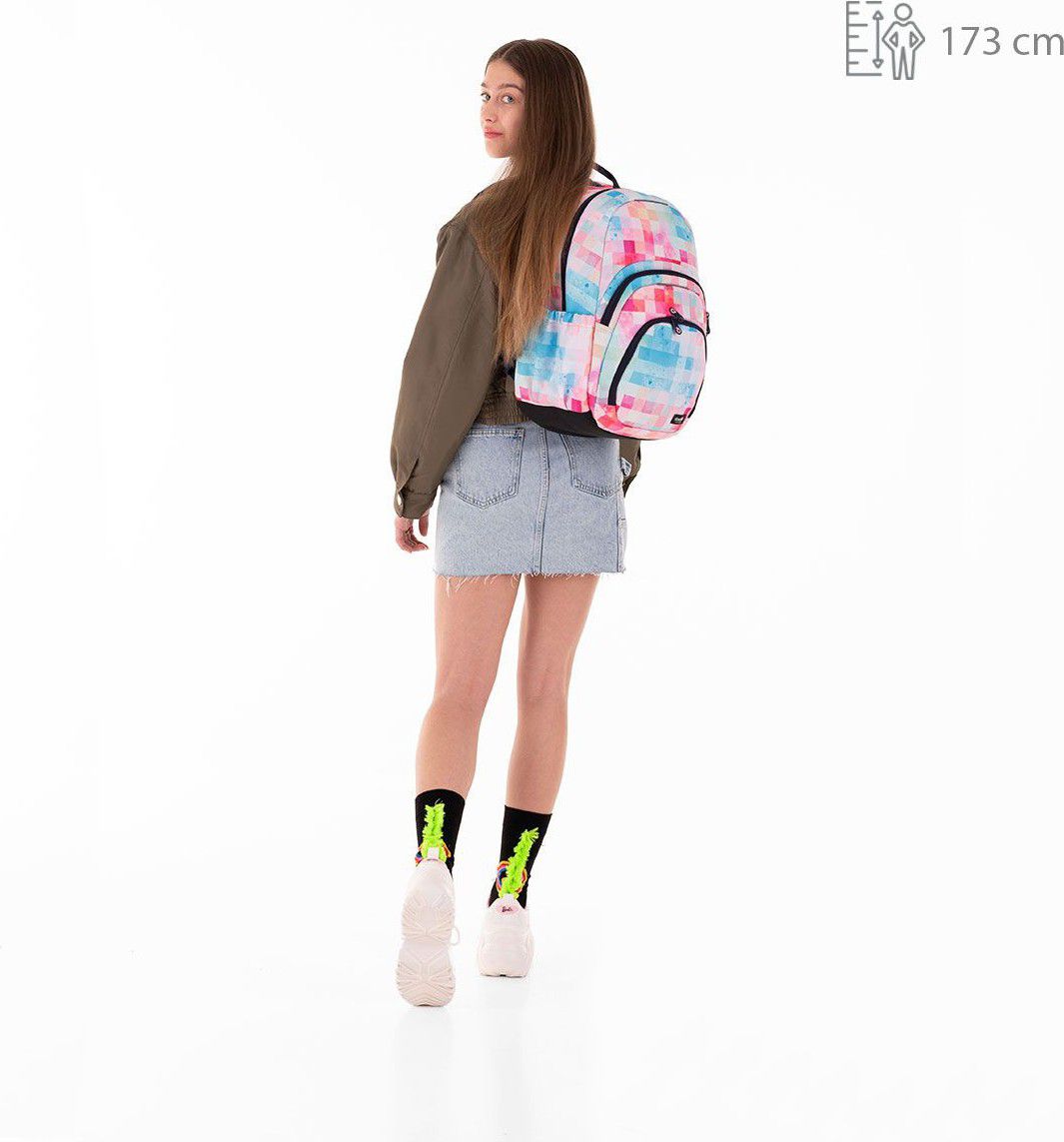 Úplná novinka mezi studentskými batohy – jednokomorový objemný batoh SKYE s pevnými polstrovanými zády, ale nízkou váhou. Objemem dosahuje až 28 litrů. Jedna hlavní objemná komora přehledně pojme vše potřebné. Uvnitř komory najdete polstrovanou kapsu na notebook, praktickou síťovou kapsu na zip a karabinu na klíče našitou na dlouhé pružence. Další drobnosti se vejdou do dvou menších předních kapsiček – třeba penál ETUE 22035 ve stejném designu.