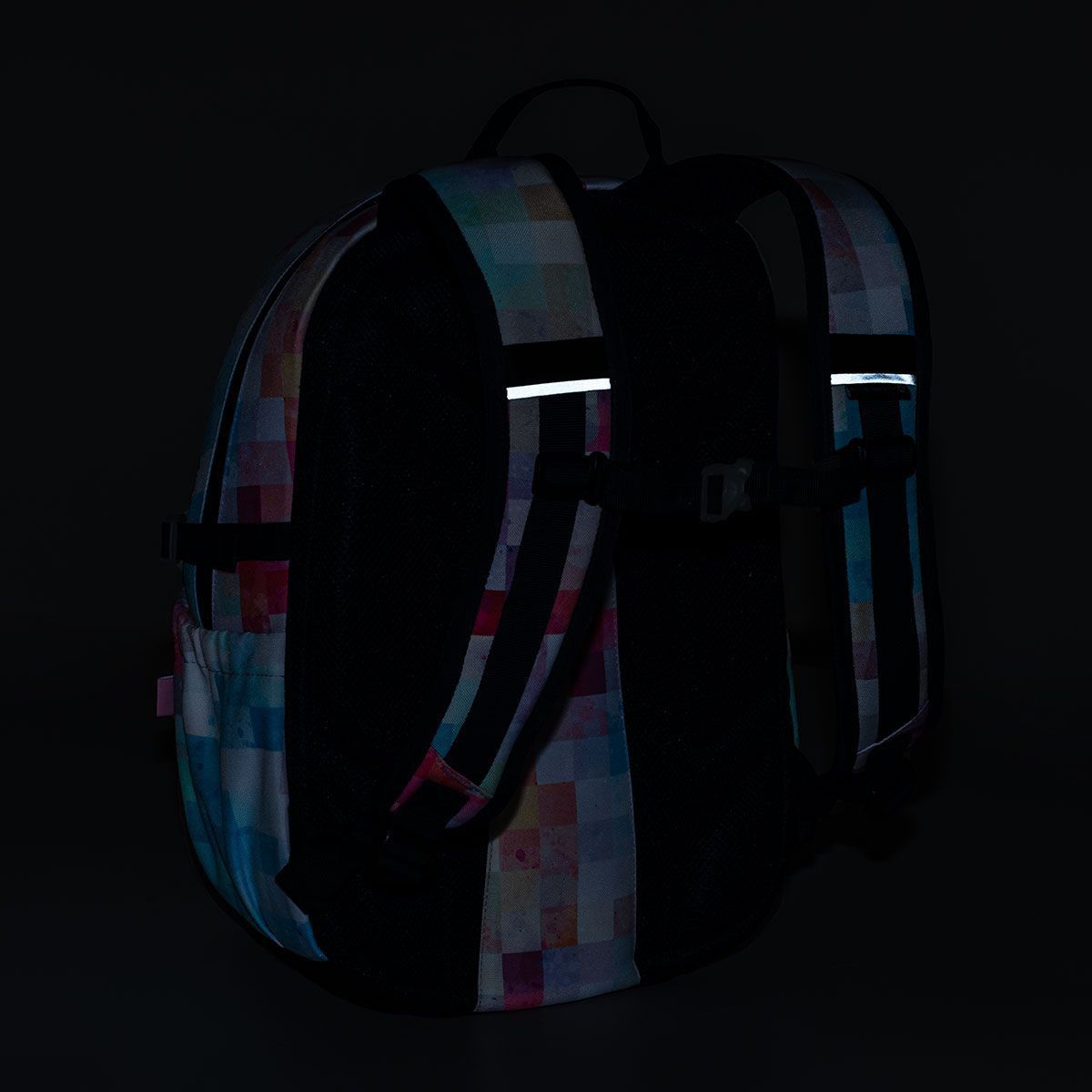 Po bocích batohu jsou dvě menší kapsy. Jedna z nich je doplněna o kompresní popruh, takže do ní můžete umístit i 1,5 litrovou PETku. Reflexní prvky jsou jemně zasazené do čela batohu a na ramenních popruzích. Batoh je opatřen zátěrem proti dešti, stejně tak jako dno z pevného, nepromokavého materiálu TOPDURA.