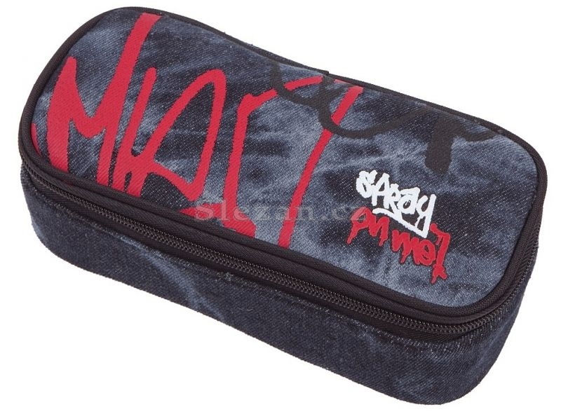 Kvalitní studentský penál. Na horní klopě je našita kapsa uzavíraná zdrhovadlem. Na ní jsou pak našity další dvě malé kapsičky. Prostřední klopa je po rozlepení suchého zipu rozevíratelná. Na její horní i spodní straně je našito deset pruženkových poutek pro uložení psacích potřeb.