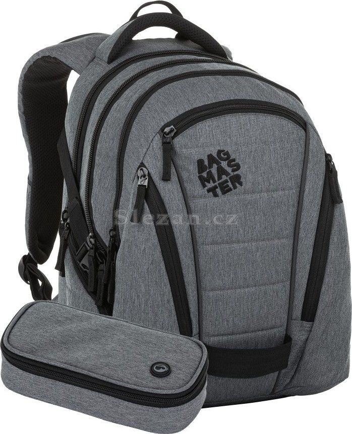 Šedý školní set penálu a batohu pro školačky a školáky od 4. třídy