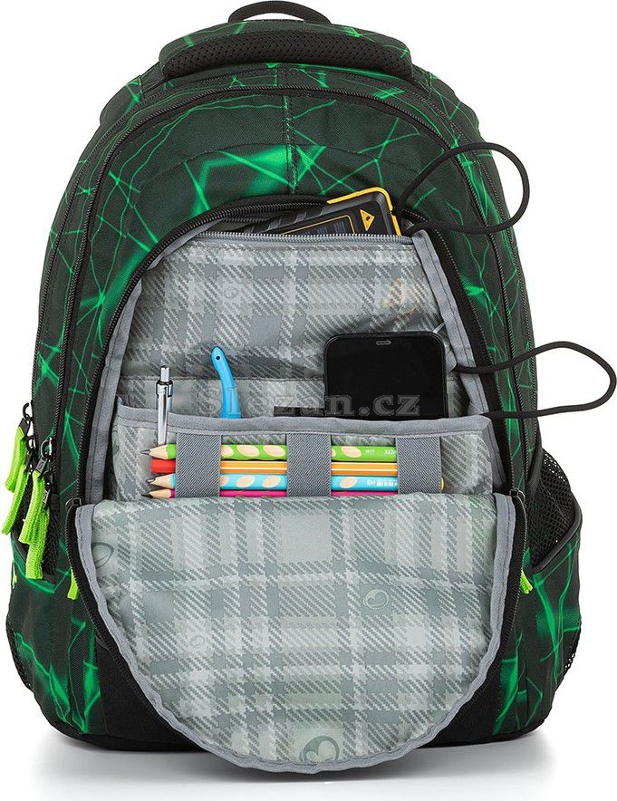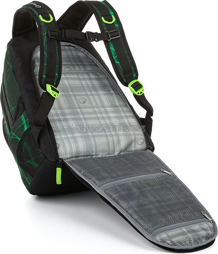 - Polstrovaná záda, se skrytou kapsou na zip, uvnitř se spoustou kapsiček