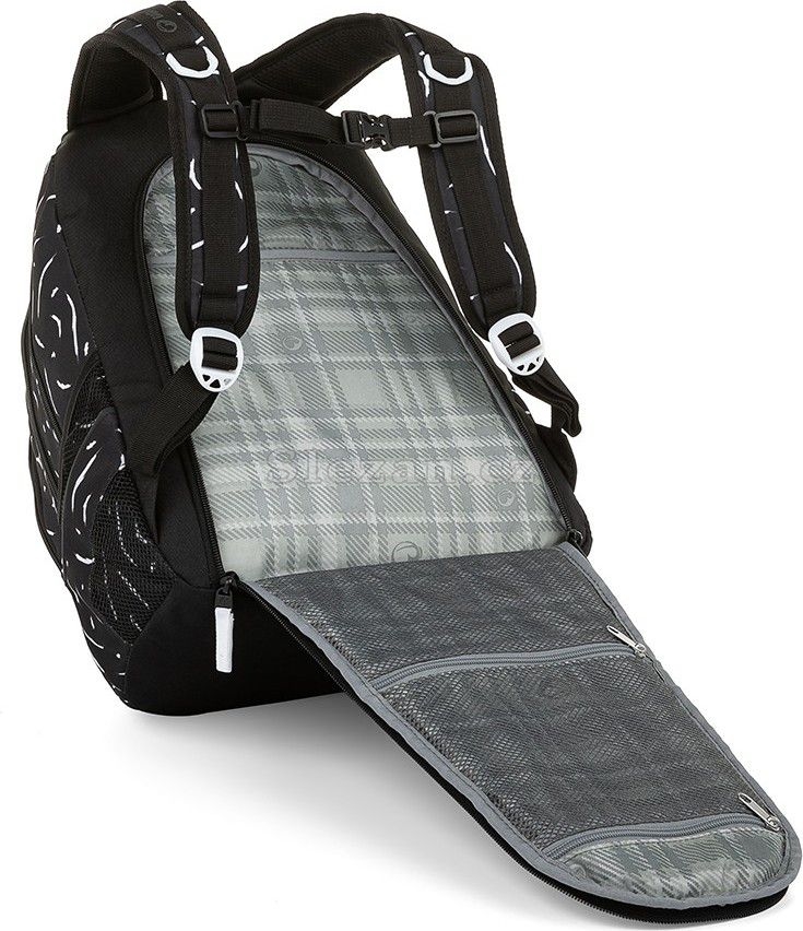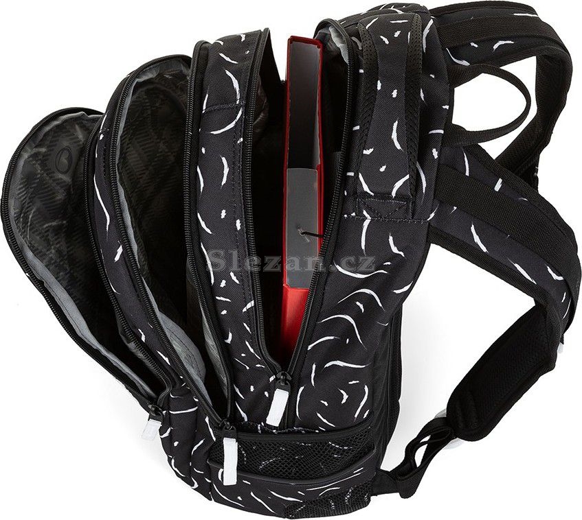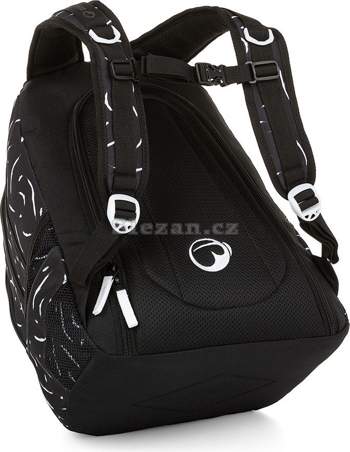 Batoh má vyztužená záda, hrudní pás a nastavitelné ramenní popruhy, které správně obepnou postavu