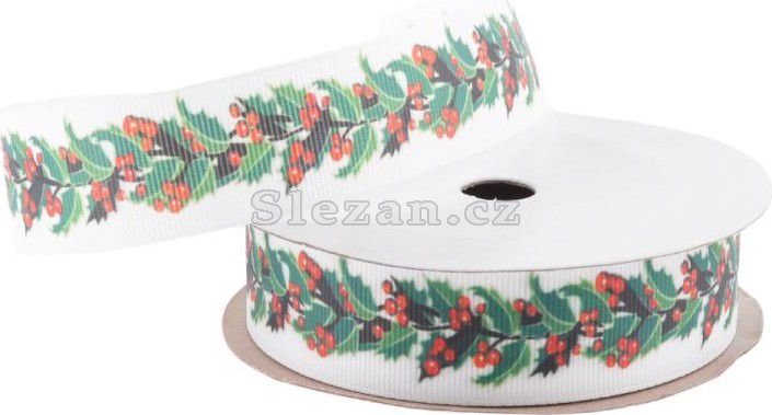 Stuha vánoční 25mmx9m bílá s cesmínou