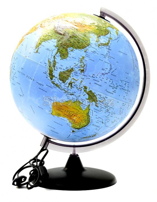 Světelný glóbus, zeměpisná mapa, po rozsvícení mapa politická.