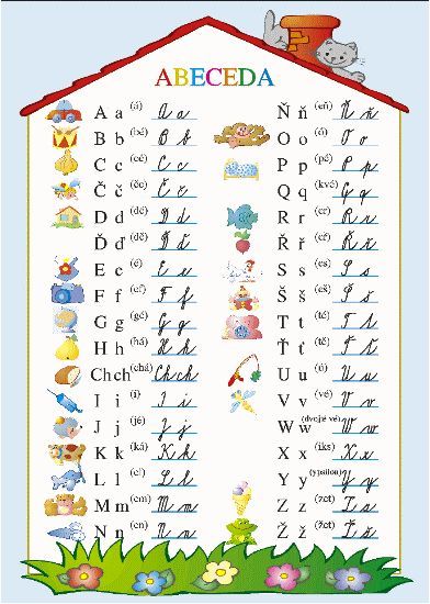 Aktuální tabule psacího písma doplněná obrázky.