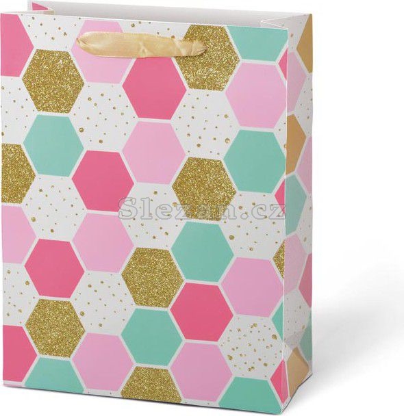 Dárková papírová taška L LUX s moderním hravým, barevným designem.