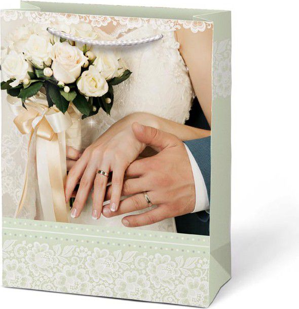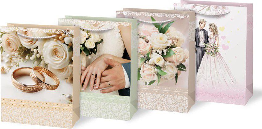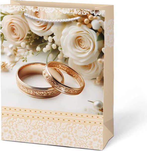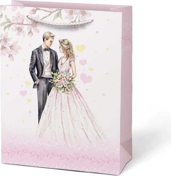 Dárková papírová taška T4 se svatebním motivem.