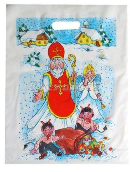 Mikulášské tašky jsou vyrobeny z bílého polyetylenu jsou určeny pro přímý styk s potravinami.