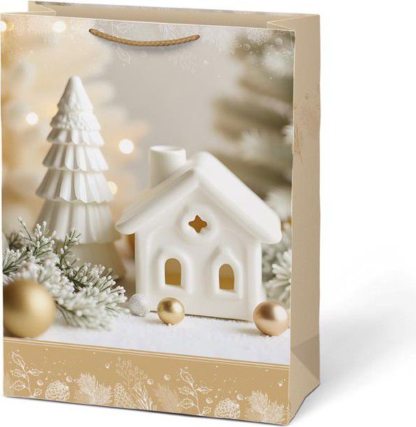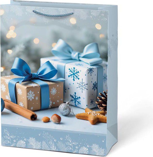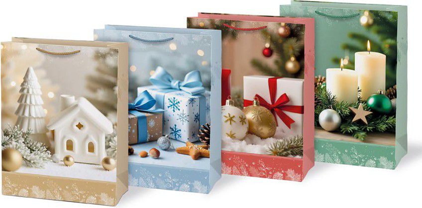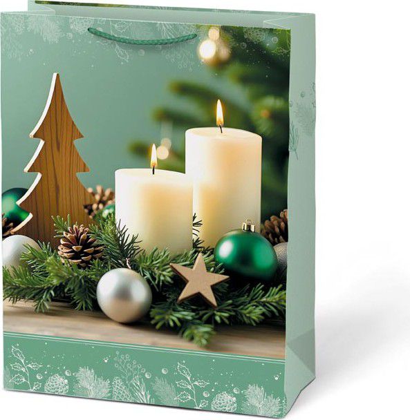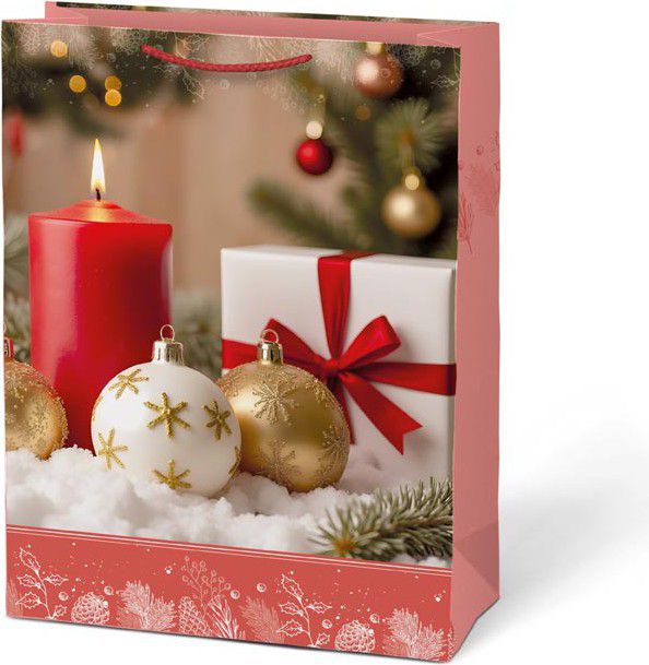 Balení velkých dárků už nemusí být složité. Dárková papírová vánoční taška MFP T10 s prostornými rozměry pojme oblečení, hračky, knihy i krabice s překvapením. Elegantní vánoční motivy – svíčky, stromeček, dárky nebo zimní dekorace – dodají vašemu dárku sváteční atmosféru a potěší ještě před samotným rozbalením. Pevný papír a odolná provázková ucha zajistí, že se dárek snadno přenáší a taška vydrží i větší zátěž.