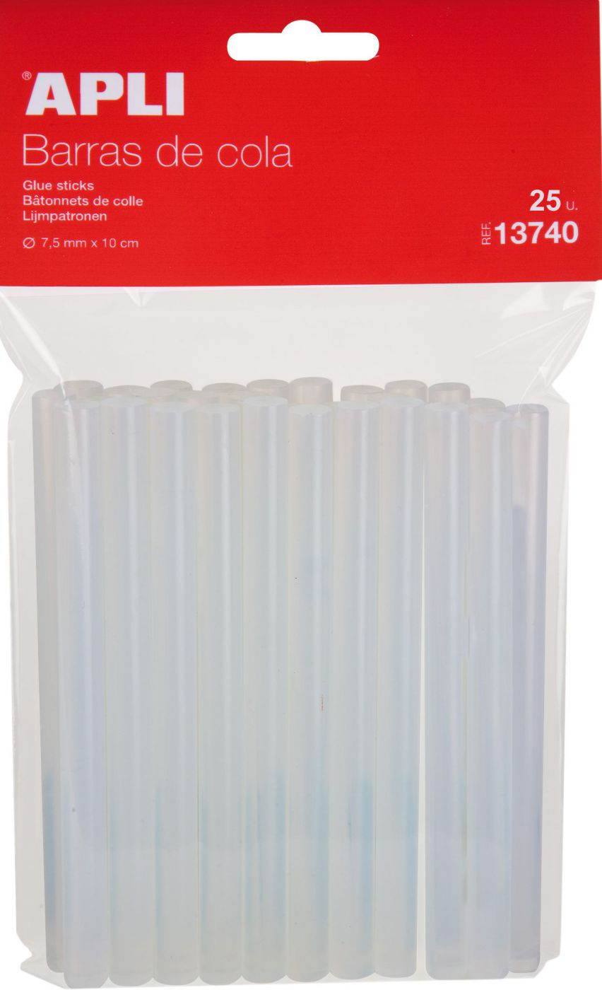 Transparentní tavné tyčinky, Ø 7,5 mm x 10 cm. Tavná pistole roztaví lepicí tyčinku a stáčí ji do tekutého lepidla. Doporučuje se na výtvarné a dekorační práce, kutilství, atd. Vhodný materiál: plast, keramika, kůže, textil, dřevo, atd. Balení: 25 ks v blistru.