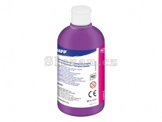 Temperové barvy MFP 500 ml - fialová. Temperové barvy jsou připravené k okamžitému malování, snadno se používají a míchají. Jsou v pračce vypratelné z většiny textilií, je dobré před praním skvrny předčistit ručně mýdlem. Vysoká hodnota pigmentu v barvě zaručuje maximální krycí vlastnosti a kvalitu. Barvy jsou výborně odolné proti vyblednutí. Díky většímu balení jsou tyto barvy vhodné pro školy, školky a různé umělecké kroužky.