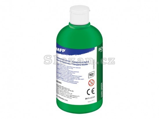 Temperové barvy 500 ml - tmavě zelená. Temperové barvy jsou připravené k okamžitému malování, snadno se používají a míchají. Jsou v pračce vypratelné z většiny textilií, je dobré před praním skvrny předčistit ručně mýdlem. Vysoká hodnota pigmentu v barvě zaručuje maximální krycí vlastnosti a kvalitu. Barvy jsou výborně odolné proti vyblednutí. Díky většímu balení jsou tyto barvy vhodné pro školy, školky a různé umělecké kroužky.