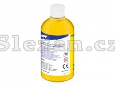 Temperové barvy MFP 500 ml - žlutá. Temperové barvy jsou připravené k okamžitému malování, snadno se používají a míchají. Jsou v pračce vypratelné z většiny textilií, je dobré před praním skvrny předčistit ručně mýdlem. Vysoká hodnota pigmentu v barvě zaručuje maximální krycí vlastnosti a kvalitu. Barvy jsou výborně odolné proti vyblednutí. Díky většímu balení jsou tyto barvy vhodné pro školy, školky a různé umělecké kroužky.