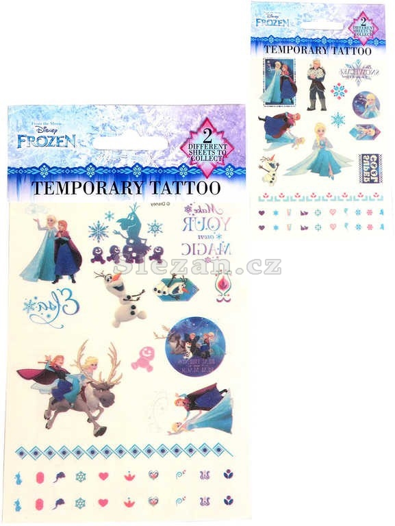 Nádherné tetování pro všechny slečny, které milují pohádku FROZEN! Vyber si obrázek, nanes jako klasickou tetovačku a máš to. V balení najdeš mnoho motivů z této pohádky, takže máš z čeho vybírat!