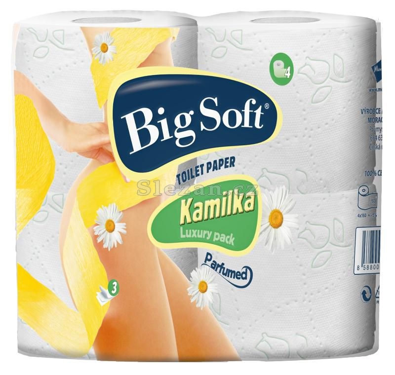 3vrstvý, parfémovaný toaletní papír, 100 % celulóza, rolička 160 útržků, balení 4 ks