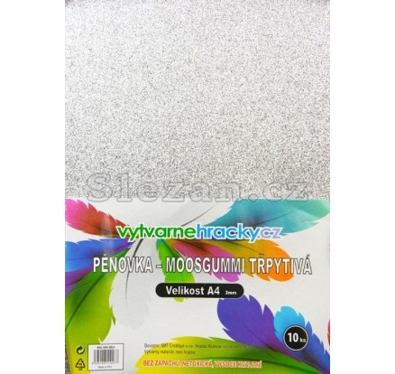 Třpytivá pěnovka - 1 arch Stříbrná, A4 - cca 2 mm