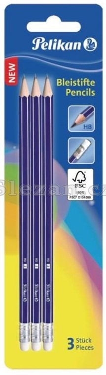 Tužka grafitová Pelikan 3ks, HB, s gumou