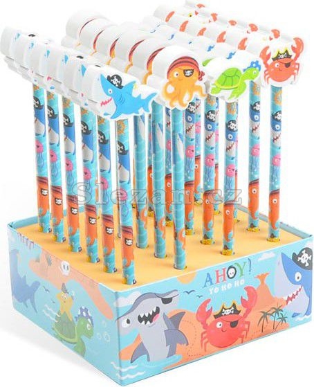 Grafitová tužka s gumou na konci, mix motivů mořských živočichů.