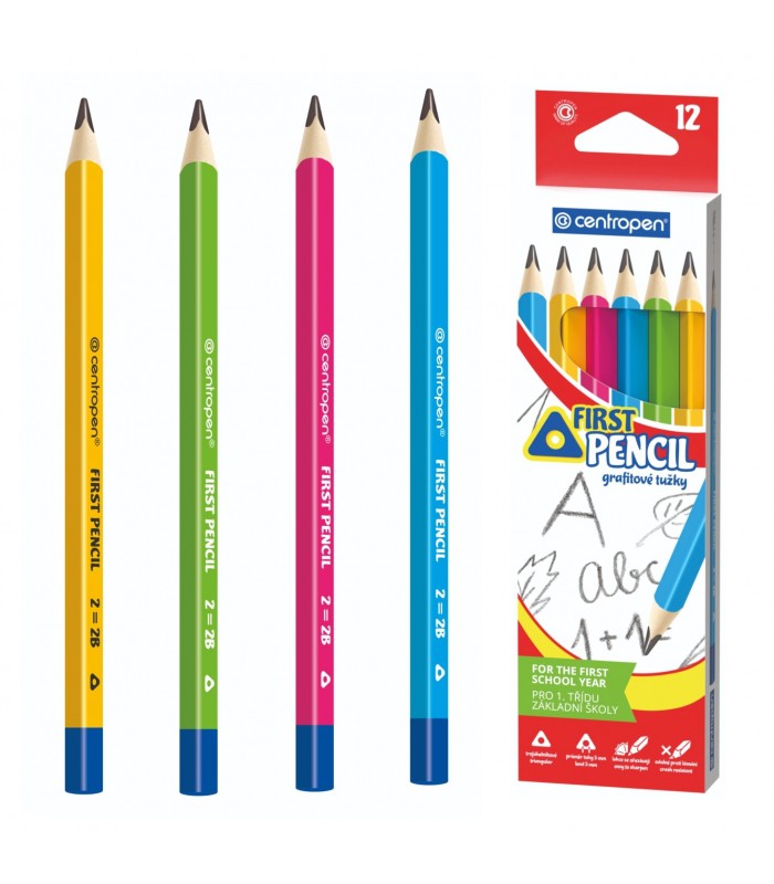 Školní grafitové tužky JUMBO s trojúhelníkovým tvarem. Vhodné pro 1. třídu základní školy. Dřevěné tělo, tuha o tvrdosti 2=2B a průměru 4 mm. Lehce se ořezává, je odolná proti lámání. Cena je uvedena za 1 kus.