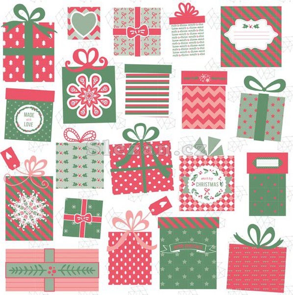 Papírový vánoční ubrousek. Ubrousek je velice kvalitní z třívrstvého papíru s motivem dárků.