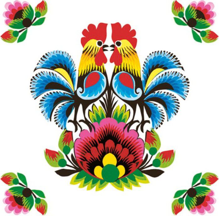 Název a označení: Łowicz Folk Roosters on White SLOG 0589 01