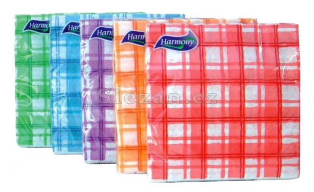 Jednovrstvé ubrousky o rozměru 33 x 33 cm, kostkovaný vzor. Mix barev. V balení 30 kusů.
