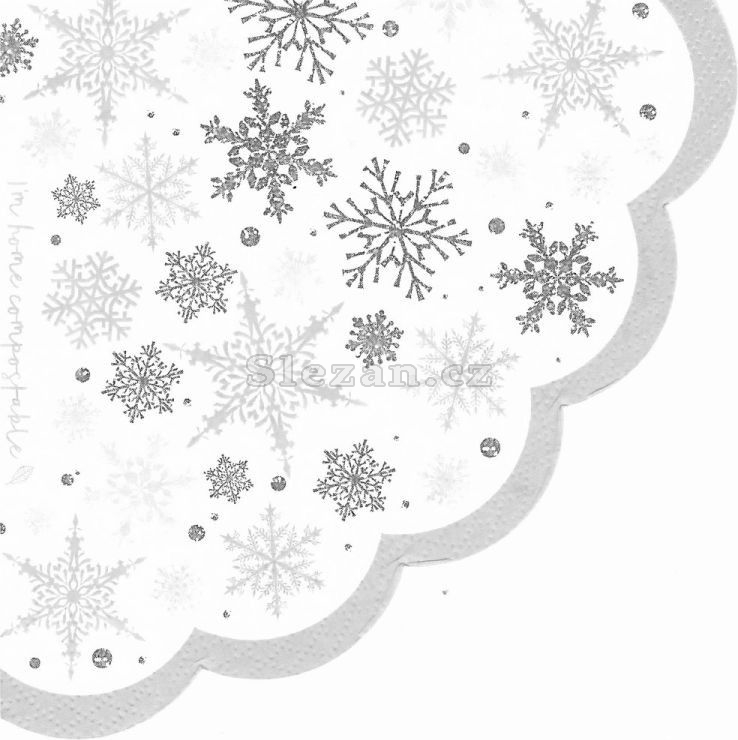 Kvalitní třívrstvé ubrousky s potiskem - Vločky, šedé.