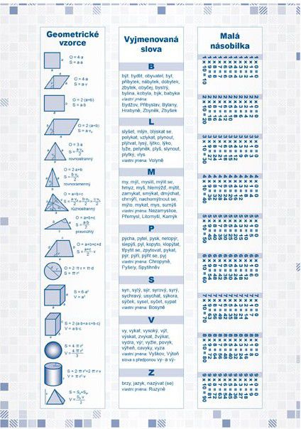 - Úkolníček obsahuje: - osobní údaje - telefonní čísla - prostor pro poznámky - malá násobilka - geometrické vzorce a matematické vzorečky - vyjmenovaná slova - rozvrh hodin