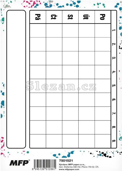 ÚKOLNÍČEK OBSAHUJE: - osobní údaje - telefonní čísla - prostor pro poznámky - malá násobilka - geometrické vzorce a matematické vzorečky - vyjmenovaná slova - rozvrh hodin