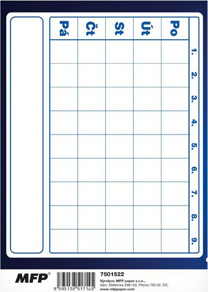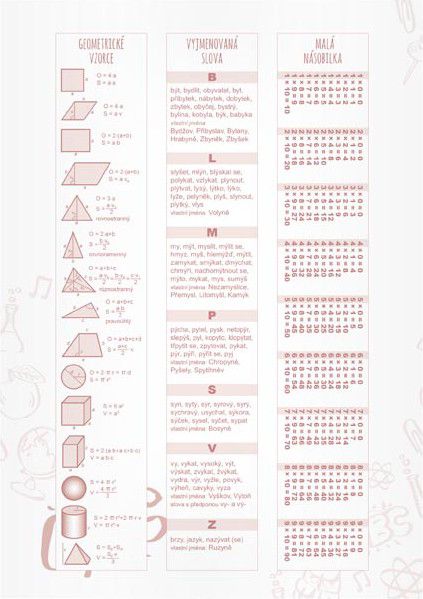 ÚKOLNÍČEK OBSAHUJE: - osobní údaje - telefonní čísla - prostor pro poznámky - malá násobilka - geometrické vzorce a matematické vzorečky - vyjmenovaná slova - rozvrh hodin