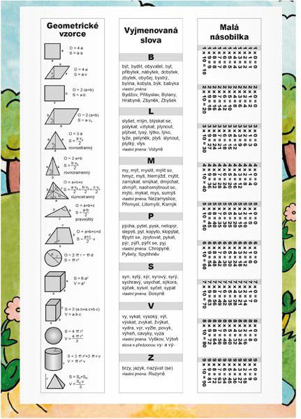 Úkolníček obsahuje: - osobní údaje - telefonní čísla - prostor pro poznámky - malá násobilka - geometrické vzorce a matematické vzorečky - vyjmenovaná slova - rozvrh hodin