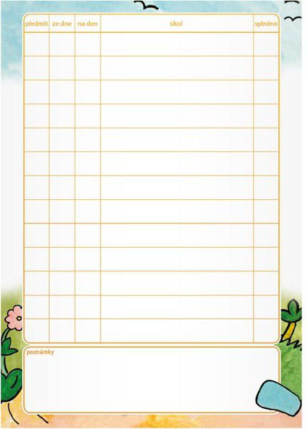 Kupte mu úkolníček, který slouží k přehlednému zapisování domácích úkolů.