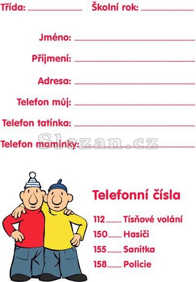 - ÚKOLNÍČEK OBSAHUJE: - osobní údaje - telefonní čísla - prostor pro poznámky - malá násobilka - geometrické vzorce a matematické vzorečky - vyjmenovaná slova - rozvrh hodin