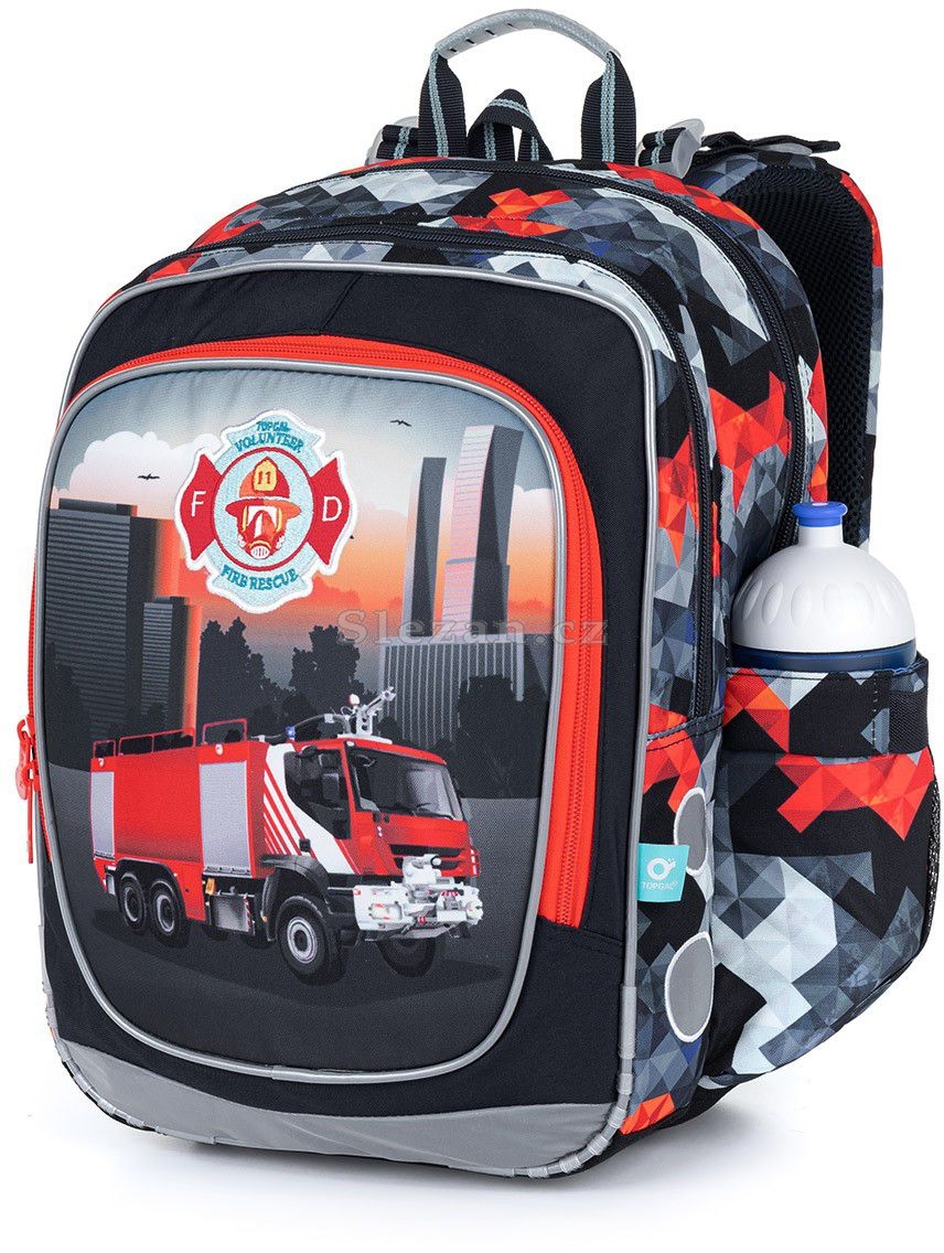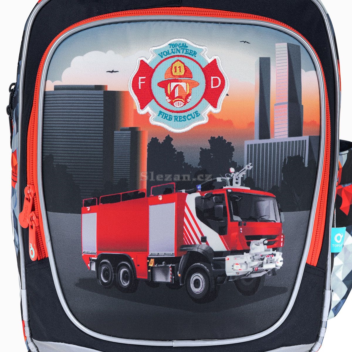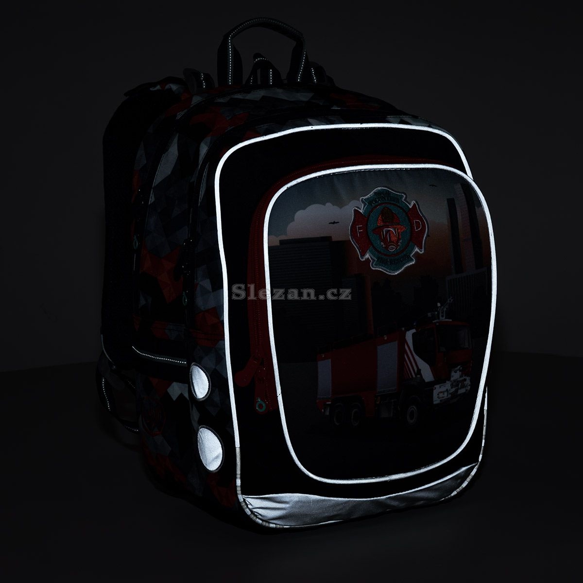 Přední, užší komora, unese vše ostatní a navíc v ní určitě využijete praktickou síťovou kapsu na zip. Jmenovka nad síťovou kapsičkou pomůže batohy rozeznat, i když se ve třídě sejdou dva hasiči se stejným batohem. K batohu můžete přikoupit i penál PENN 21013 ve stejném designu. Ten snadno umístíte do přední komory nebo do přední hluboké kapsy, kde určitě oceníte i odnímatelnou karabinku na klíče. Lahvičku na pití dejte do kapsy na boku batohu, která je skrytá za zipem. Pohodlně se do ní vejde třeba naše lahvička ZIVA. Batoh je bohatě vybaven reflexními prvky, což oceníte hlavně v zimním období. Přesvědčit se, jak batoh svítí ve světle reflektorů, můžete v detailních fotkách, kde máme batoh nafocený i ve tmě. Další vychytávky: zátěr proti dešti – látka nepromokne odolné dno z materiálu TOPDURA opatřené nožičkami poutko na přenášení batohu v ruce a poutko na lavici batoh byl testován v ITC Zlín a prošel na jedničku Náš tip: Batoh je sice nejlehčí z naší nabídky, ale ti tak bude se vším učením, co musejí děti nosit denně na zádech, dost těžký,... Zkuste do lahvičky na pití dát třeba jen sirup, aby si jej vaše dítě dopustilo ve škole. Ulehčíte tak batoh až 0,5 kg váhy!