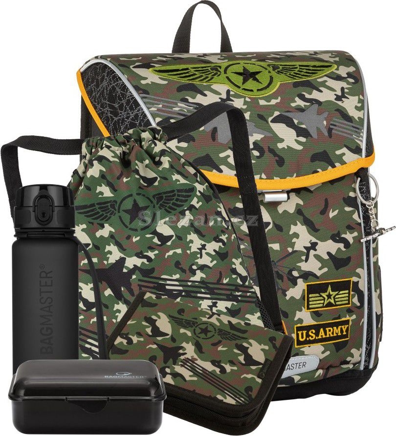 K aktovce je v setu vojenské pouzdro, sáček na přezůvky nebo tělocvik a výbava na svačinku