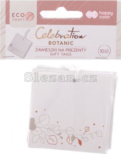 Visačky na dárky jsou nepostradatelným dekoračním prvkem při jejich balení. Lze je využít nejen na dárky, ale také jako jmenovky na svatební tabuli nebo při rozlučkové party. Visačky dárkové jsou v eko bílém provedení s potiskem listů se zlatými prvky bez textu. Opatřeny jsou bílým provázkem. Rozměr : 6x6cm Balení: 10ks Cena je uvedena za 1balení.