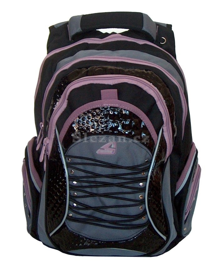 Žákovský batoh má tři hlavní kapsy. Přední kapsa batohu je uvnitř rozdělena přepážkou, na které jsou našity kapsičky pro mobilní telefon a stravenky. Prostřední kapsa má na své zadní straně našity dvě kapsy pro odkládání žákovská knížky a klíčů.. Hlavní kapsa je uvnitř rozdělena dvěma přepážkami, pro lepší uložení školních pomůcek (sešitů, knih). Na své zadní straně má našitu další přepážku s kapsou. Na obou stranách batohu jsou dvě menší kapsy k odkládání láhve s pitím, peněženky, kapesníčků. Žákovský batoh je vybaven polstrovanými zády, pro pohodlné a správné nošení. Dále je vybaven polstrovaným držadlem a výškově nastavitelnými řemeny, na kterých je našita plastová karabina, která umožňuje pevnější usazení batohu na zádech. Jako hlavní materiál je použit Polyester 600D 72T s vodoodpudivou úpravou a při celkových rozměrech v.450 x h.200 x š.310 mm a objemu 28 litrů, váží batoh pouhých 1,250 kg
