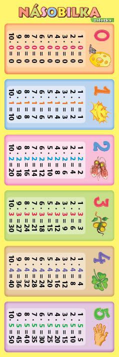 Praktická záložka obsahuje přehledně zpracovanou násobilku s ilustracemi pro malé i velké počtáře.