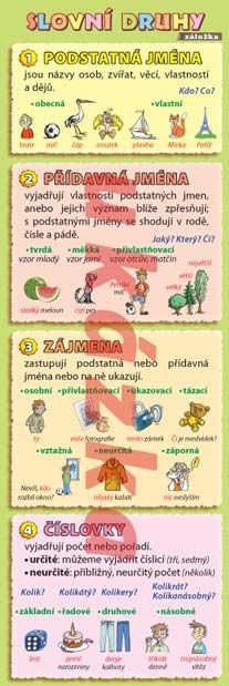 Praktická záložka obsahuje přehledně zpracované slovní druhy včetně příkladů a názorných ilustrací.