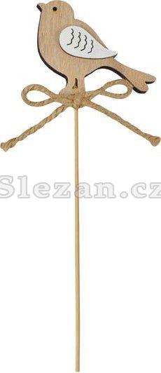 Dřevěný zápich ptáček. Zápich v designu dřevěného ptáčka, poslouží jako krásná dekorace na Vaši zahradu nebo na zkrášlení interiéru. Velikost: 25 cm Uvedená cena je za 1 ks.